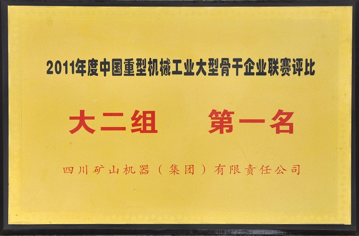 China Heavy Machinery Association hosted the 2011 annual large backbone enterprise of China Heavy Machinery Industry Factory International League competitions in Sichuan Mining Group won the first sophomore Group.The total assets of the contribution rate, the cost of utilization, overall labor productivity, industrial economic efficiency index "," steel utilization "units" per capita profits and taxes, the sales profit,wages to create industrial added value "," industrial accidents deaths lowest nine individual indicators column League first.